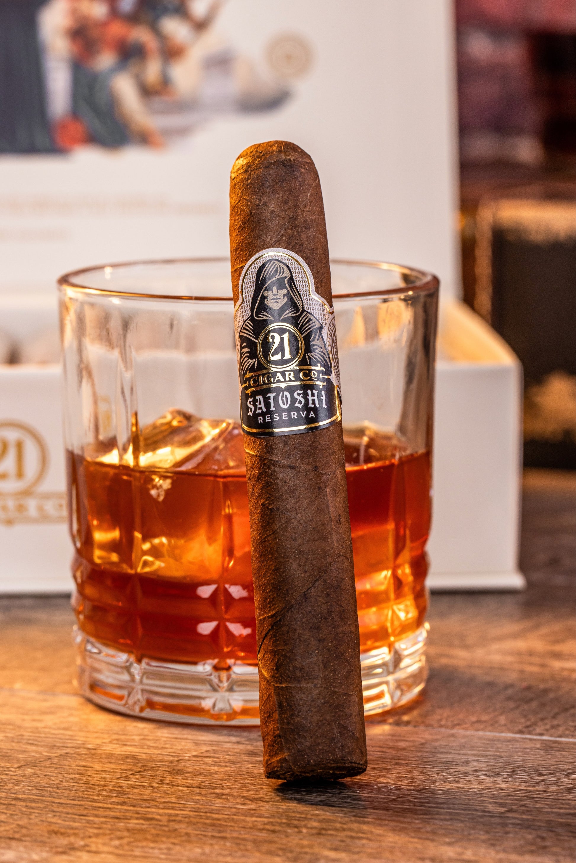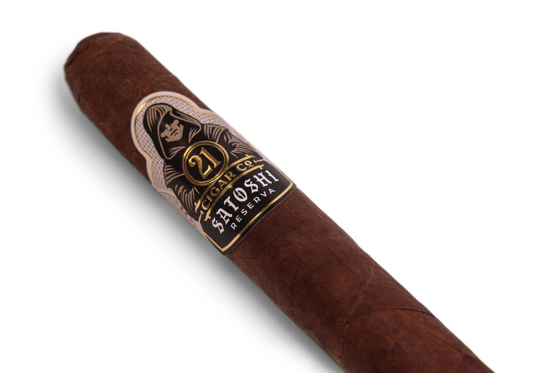 The Satoshi Reserva Robusto (5x50) is 21 Cigar Co.’s boldest offering, designed for aficionados craving intensity. Crafted in Miami by skilled artisans, this medium-to-full-bodied cigar blends premium long-filler tobaccos wrapped in a lustrous Ecuadorian Habano Oscuro. Expect robust dark chocolate, leather, and spicy oak with a lingering espresso finish. Priced at $210 for a box of 12 ($17.50/cigar), it’s a commanding, well-balanced centerpiece for any collection.